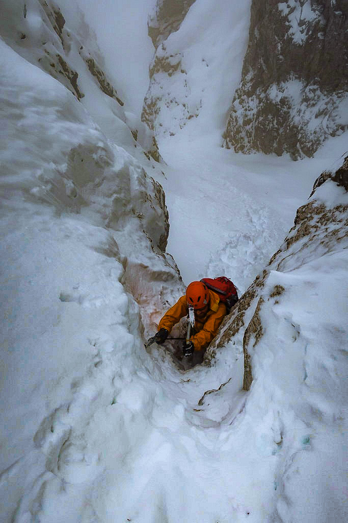 Sarà stata la recente nevicata, le condizioni della salita, l'atmosfera invernale e fiabesca o la variante in uscita, ma io ho trovato il canale molto divertente e consigliabile, seppur facile.