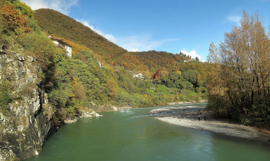 Faccio la prima deviazione, niente più che pochi passi per raggiungere lo sbarramento del Linificio: il Brembo è in ottima forma...