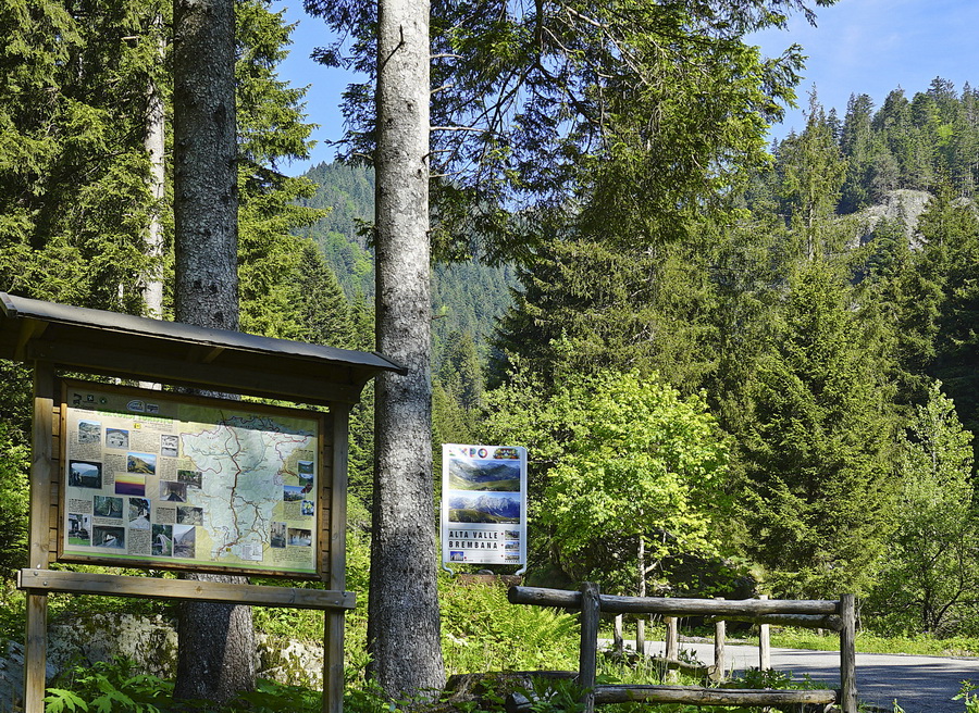 Appena superato il Passo San Marco troviamo il primo totem, che simbolicamente dà il benvenuto nella nostra valle ed invita a fermarsi per ammirare lo spettacolo naturale di questo ampio e bellissimo anfiteatro, costituito da ricchi alpeggi, popolati da mandrie libere di vacche bruno-alpine e luogo di produzione dei formaggi “principe” e contornato dalle cime delle Alpi e Prealpi Orobie. Il bel colore verde dei prati e della valle ci accompagnerà lungo tutto il percorso e fa spicco il contrasto fra le rocce calcaree ed i verdi pascoli; qui le precipitazioni sono abbondanti, ecco il motivo di questo bel verde.