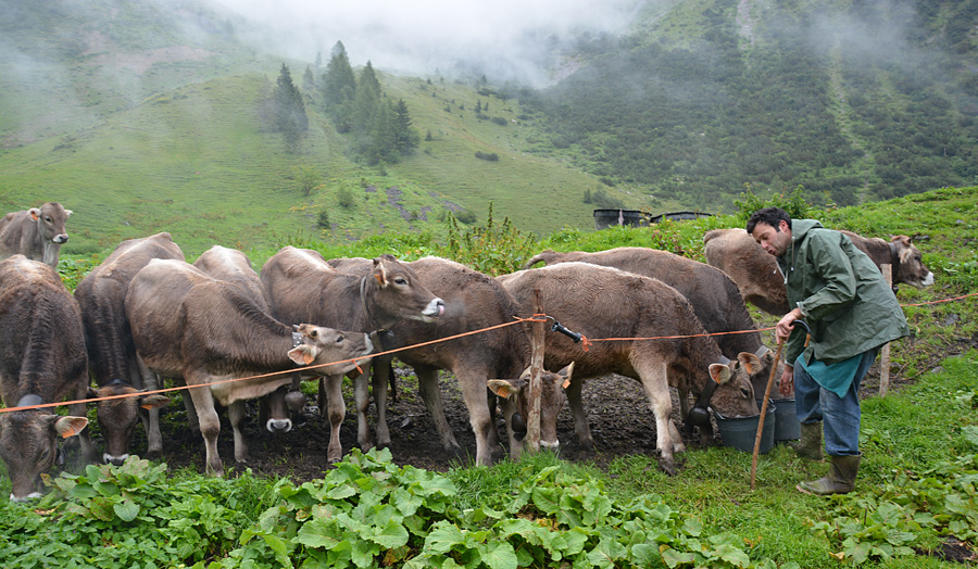 In quest'estate piovosa e ricca di temporali con temperature sottomedia, idem domenica scorsa alle Baite di Mezzeno dove c'era in programma l'ottava edizione della Sagra del Colesterolo, svolta regolarmente con una cinquantina di partecipanti che sono stati premiati dall'ostinazione di esserci ugualmente nonostante le avverse condizioni meteo. Gruppi di persone che arrivano con l'ombrello aperto... a loro interessava gustare la cucina del casaro Sperandio e della sua famiglia. Presenti le autorita' locali: il sindaco di Roncobello Andrea Milesi, il rappresentante dei comuni vallari al Parco delle Orobie Bergamasche Gervasoni e l'assessore all'Agricoltura della CMVB Damiani Orfeo. Gradito ospite il caporedattore de L'Eco di Bergamo Giovanni Ghisalberti che ha gustato la delizia della polenta cunsada dell'Alpe di Mezzeno. Un ringraziamento a tutti i partecipanti e alla famiglia Sperandio per ottima cucina e l'ospitalità...