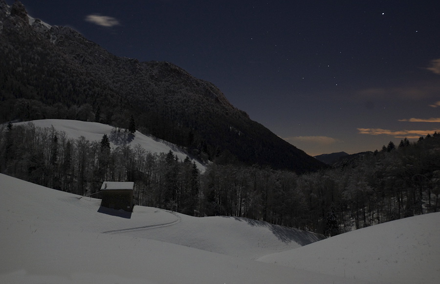 Il duo dei licantropi brembani in una nottata di luna piena tra la candida neve della Valserina.....